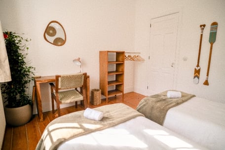 Whether you're seeking a stylish hideaway for your Porto experience, looking to connect with fellow travelers, or need a relaxed base for your surf trip through northern Portugal — our Surf Lodge is the perfect setting. Expect laid-back beach vibes infused with urban flair and a hint of retro elegance. Design classics blend seamlessly with modern touches and thoughtfully curated details. Natural materials like wood, rattan, and unique vintage finds create a warm, personal atmosphere full of character.
