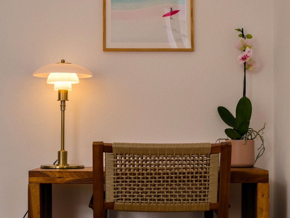 Encontrarás um ambiente descontraído de praia com um toque urbano e uma pitada de elegância retro. Os clássicos do design combinam na perfeição com toques modernos e detalhes cuidadosamente selecionados. Materiais naturais como madeira, vime e peças vintage únicas criam uma atmosfera acolhedora e pessoal, repletos de personalidade.