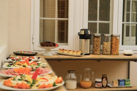 Todas as manhãs, à tua espera, um buffet de pequeno-almoço cuidadosamente preparado com ingredientes selecionados espera por ti. Desfruta de uma variedade colorida de frutas e vegetais saudáveis, doces e clássicos salgados para começares o dia da melhor forma. Podes escolher entre diferentes tipos de pão, croissants, bolos, manteiga, queijo creme, enchidos, queijos e compotas, além de uma seleção de muesli, iogurte e salada de frutas frescas. Leite, café, chá, água e sumo de laranja também estão disponíveis.